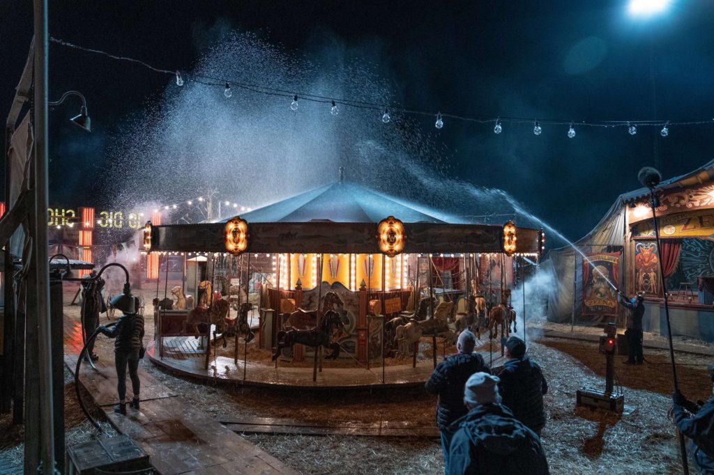 コロナウイルスの影響を受け、撮影の中断を余儀なくされた本作だが、野外に建てられたカーニバルはその間に雨風に打たれたことで、より一層のリアルさをもたらす結果となったというエピソードも!そして、後半の都会パートのロケ地には、40年代初頭の街並みを今も残すトロントとバッファローが選ばれた。