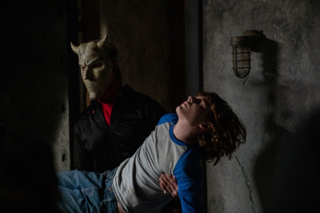 主演のイーサン・ホークは、4度のオスカー®ノミネート歴 を誇るそのキャリア史上、最もおぞましい役に挑んだ。メイソ ン・テムズは、本作でスクリーンデビューを飾る。『フッテージ』、 『エミリー・ローズ』、マーベル・スタジオ製作『ドクター・スト レンジ』で監督・脚本を務めたスコット・デリクソンが、監督・ 共同脚本・製作を担った。フィニーの妹役グウェンに、マデリ ーン・マックグロウ(『アントマン&ワスプ』)、フィニーとグウ ェンの父親役に、ジェレミー・デイビス(『なんだかおかしな物 語』)、さらにジェームズ・ランソン(『フッテージ』)らが出演に 名を連ねた。