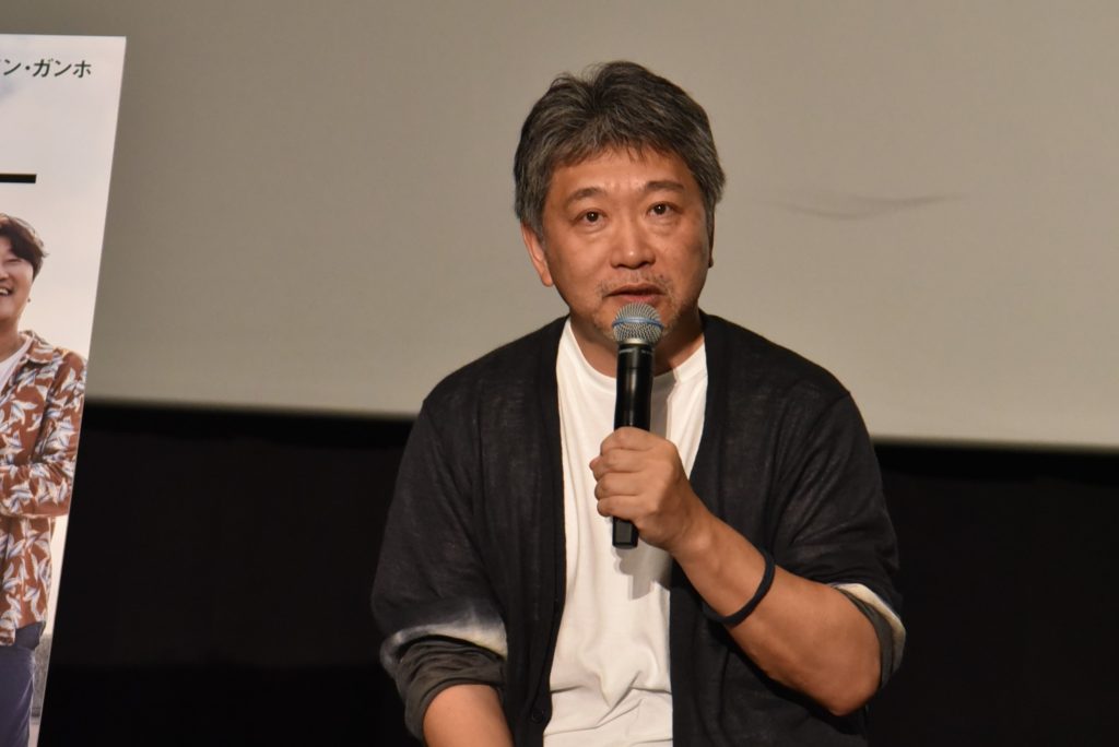 この日は、客席の観客からの質問にも答えたが、最初は、ラストシーンで5人の写真がミラーにぶら下がっているが、その意図についての質問。是枝監督はしばし思案したあとに「よかったですよね?」とニヤリ。「あの瞬間を思い出すん