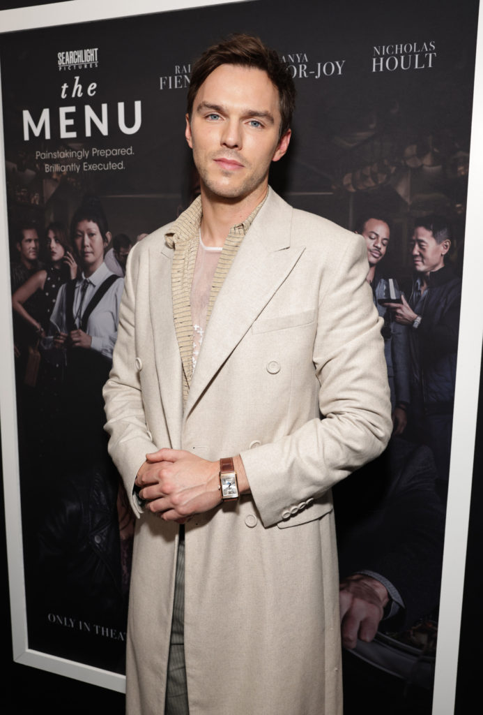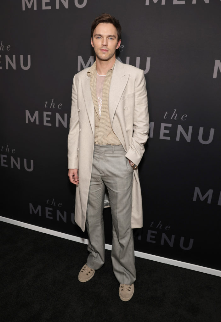 テイラー=ジョイと同じくディオールの爽やかなベージュのロングコートで登場したホルトは「この映画の感想は、観た人によって異なると思います。(レストランに)招待されたゲストの恥じるべき秘密がシェフによって次々と暴かれていったり、プロとして芸術的・創造的に過小評価されることの辛さなど、共感できるポイントはさまざまですよね。」また、「私自身、風刺映画、ダークコメディは好きなのですが、演技をするという観点では、真実や本当の姿をあえて演じていないことが多いです。登場人物の滑稽さゆえに、それらが風刺や笑いになったり、瞬間的に恐ろしくなったりするのがこのジャンルの特徴だと思います。」と自身の演技に対しての姿勢について明かした!
